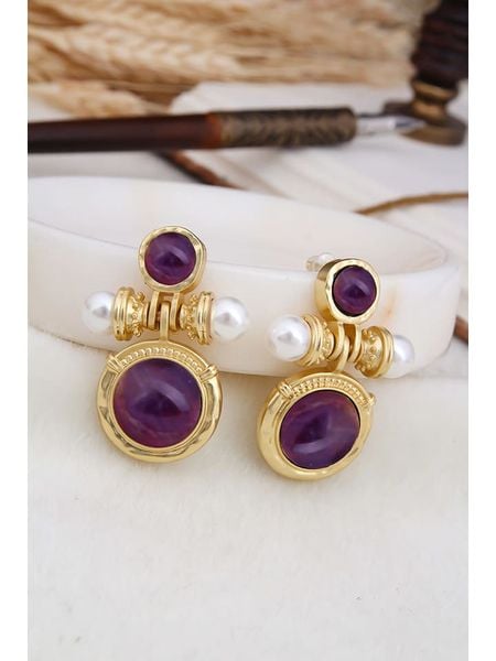 – materiał: mosiądz- powłoka: złoto- zapięcie: pin- rodzaj perły: hodowlana- kolor pereł: biały- rodzaj kamienia: ametyst- kolor kamienia: fioletowyWskazówka: Zdjęcie produktu w powiększeniu.