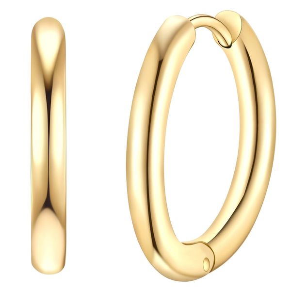 INFORMACJE OGÓLNE: Rodzaj kolczyków: Kolczyki kreolki Grupa docelowa: Kobiety MATERIAŁ: Materiał podstawowy: Stal nierdzewna Kolor materiału podstawowego: Żółte złoto Powłoka: Pozłacany 14-karatowym żółtym złotem Wykończenie powierzchni: Polerowana na wysoki połysk WYMIARY: Wysokość kolczyka w mm, w przybliżeniu:17,8 Szerokość kolczyka w mm, w przybliżeniu: 2,5