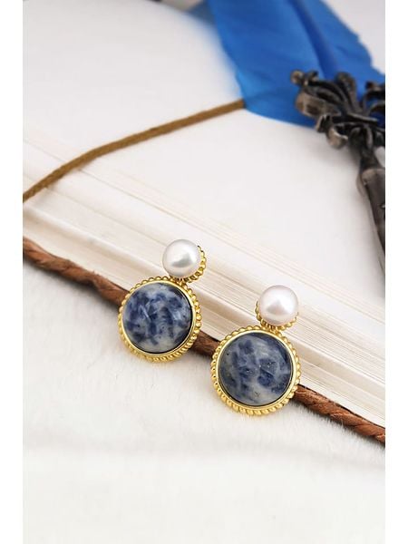 L’Atelier de Gaia Pozłacane kolczyki z perłami i sodalitami rozmiar: onesize