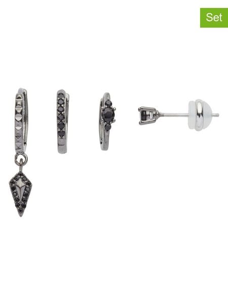 W zestawie:- 4 kolczyki z kryształami- materiał: metal- powłoka: IP-black- zapięcie: wtyk, patka- rodzaj kamienia: kryształ- kolor kamienia: czarnyWskazówka: Zdjęcie produktu w powiększeniu.