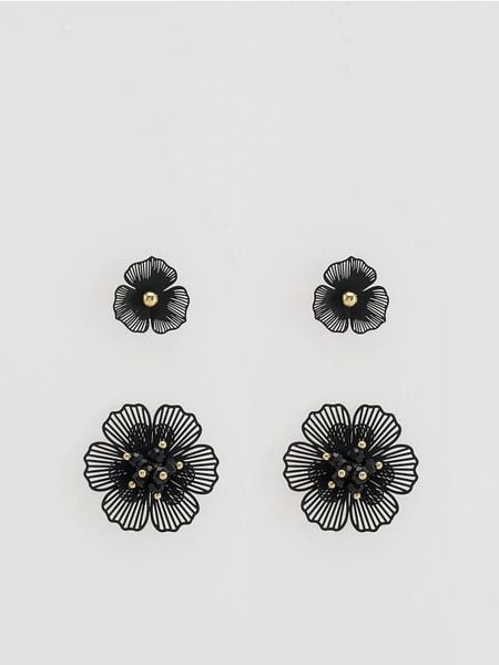 Kolczyki w kształcie kwiatów 2 pack – czarny