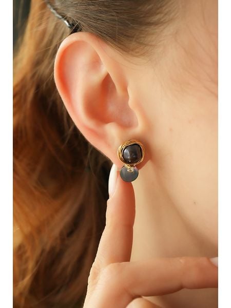 – materiał: mosiądz- powłoka: złoto- zapięcie: wtyk- rodzaj kamienia: labradoryt- kolor kamienia: szaryWskazówka: Zdjęcie produktu w powiększeniu.