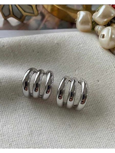 Elli Damskie kolczyki kreole z rowkami ze srebra próby 925 Sterling Silver, pozłacane Kolczyki 1 ct
