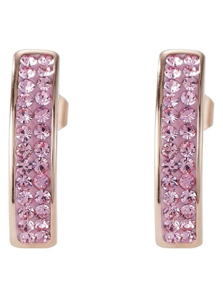 – materiał: stal szlachetna- powłoka: w kolorze różowego złota- zapięcie: motylkowe- rodzaj kamienia: kryształ- kolor kamienia: jasnoróżowyWskazówka: Zdjęcie produktu w powiększeniu.