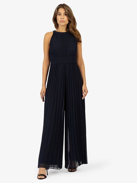 – ramiączka: wąskie- dekolt: okrągły- zapięcie: suwak i guzik na plecach- krój nogawek: Wide Leg- detale: plisy- krój: taliowany- look: jednokolorowy