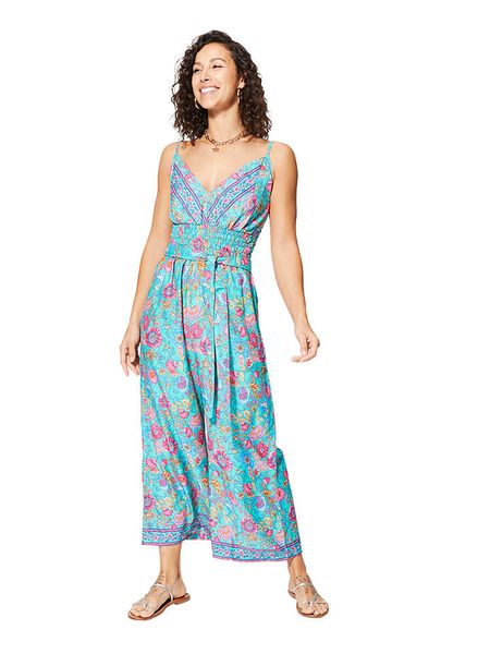 – ramiączka: regulowane- dekolt: V- talia: marszczona- zakończenia nogawek: dzwony- krój: prosty- wzór: na całościWskazówka: Na metkach odzieży tej marki znajdują się rozmiary francuskie. Rozmiarówka została przez nas przeliczona. Podane do wyboru warianty rozmiarów odpowiadają standardowym europejskim rozmiarom konfekcji. Prosimy zapoznać się z zamieszczonym objaśnieniem rozmiarów: