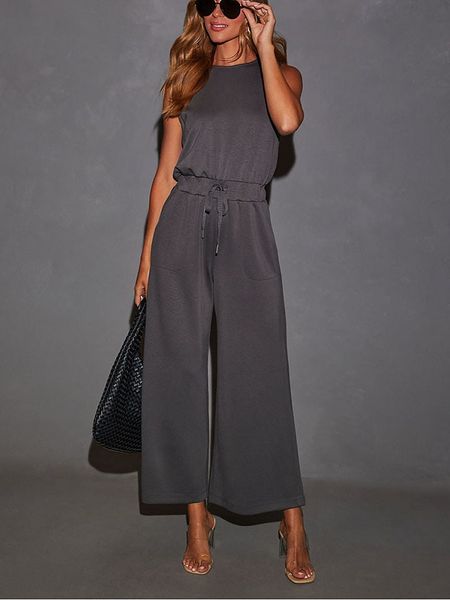 – ramiączka: szerokie- dekolt: okrągły- zapięcie: guzik na plecach- talia: ściągacz tunelowy- kieszenie: wpuszczane- krój nogawek: Wide Leg- krój: prosty- look: jednokolorowyUwaga: Przy wyborze właściwego wariantu zaleca się korzystanie z tabeli rozmiarów.