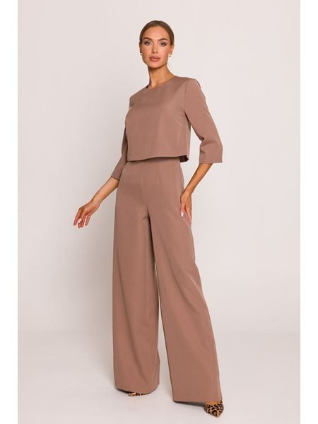 – dekolt: okrągły- zapięcie: suwak z tyłu- długość rękawa: półdługi- kieszenie: wpuszczane- zakończenia nogawek: dzwony- krój: prosty- look: jednokolorowy