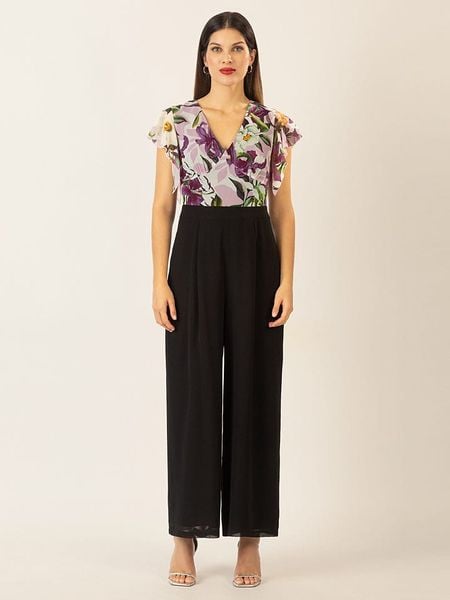 – dekolt: V- zapięcie: suwak z tyłu- krój rękawów: motylek- kieszenie: wpuszczane- krój nogawek: Wide Leg- detale: kant- krój: taliowany- wzór: na całości