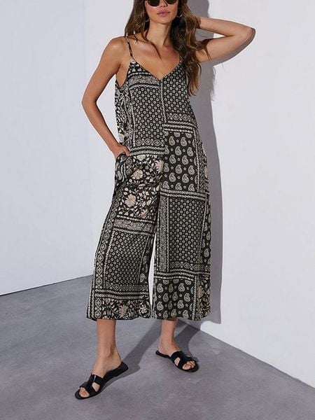 – ramiączka: regulowane- dekolt: V- kieszenie: wpuszczane- długość nogawek: 7/8- krój nogawek: Wide Leg- krój: luźny- wzór: mixUwaga: Przy wyborze właściwego wariantu zaleca się korzystanie z tabeli rozmiarów.