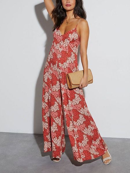– ramiączka: regulowane- dekolt: V- zapięcie: wiązanie na plecach- kieszenie: wpuszczane- krój nogawek: Wide Leg- krój: luźny- wzór: kwiatowyUwaga: Przy wyborze właściwego wariantu zaleca się korzystanie z tabeli rozmiarów.
