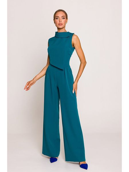 – kołnierz: stójka- zapięcie: boczny suwak- kieszenie: wpuszczane- krój nogawek: Wide Leg- detale: ozdobne guziki, plisy- krój: taliowany- look: jednokolorowy