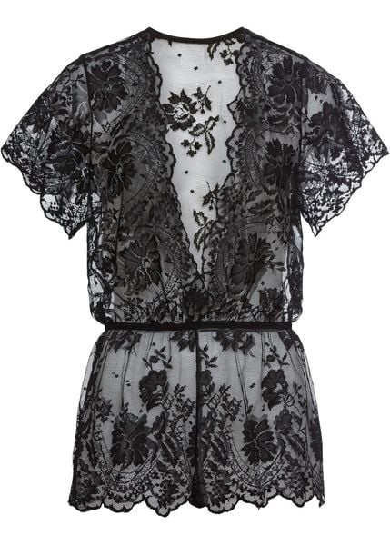 Zmysłowy kombinezon z koronki. Kombinezon na wyjątkowe chwile we dwoje, z gumką w talii w atrakcyjny sposób podkreśla kobiece kształty. Głęboki dekolt w serek zdobiony koronką. Idealny w komplecie z czarnymi butami na obcasach szpilkach, zapewni Ci zjawiskowy wygląd, którym oczarujesz swojego ukochanego!