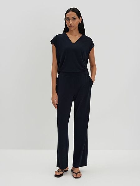 – dekolt: V- talia: elastyczna- kieszenie: wpuszczane i tylne- krój: prosty- look: jednokolorowy