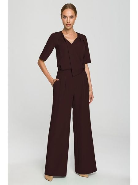 – dekolt: V- długość rękawa: półdługi- kieszenie: wpuszczane- zakończenia nogawek: dzwony- krój: prosty- look: jednokolorowy
