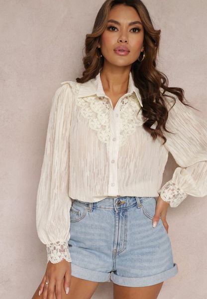 Jasnobeżowa Koszula z Metaliczną Nitką i Koronką Knikkar