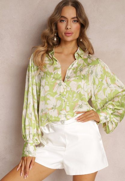 Zielona Koszula w Kwiaty z Szerokimi Mankietami Dadred
