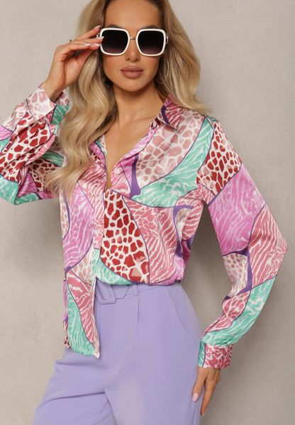 Fuksjowa Klasyczna Koszula z Kolorowym Abstrakcyjnym Printem Ripeata