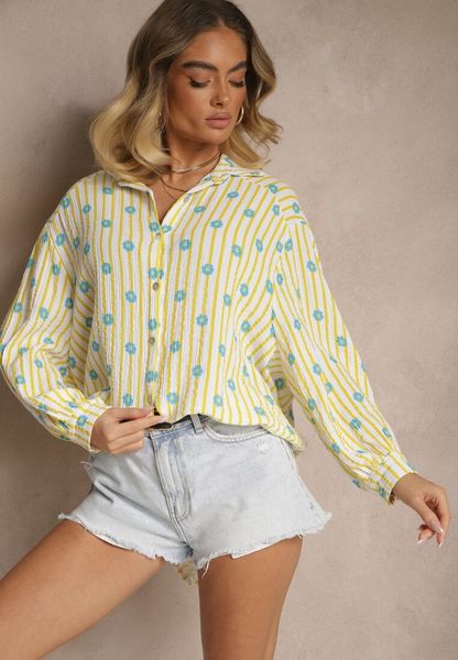 Żółta Koszula z Bawełny ze Wzorem Pasków i Kwiatów Naphera