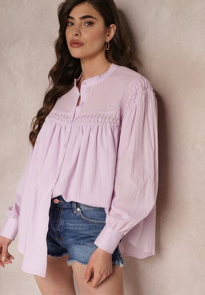 Fioletowa Koszula z Bawełny z Ozdobnymi Wstawkami Lakinia