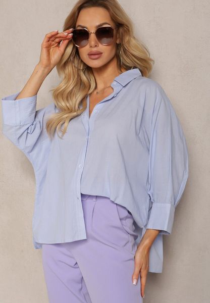 Niebieska Koszula z Bawełny Rękawy 3/4 Typu Nietoperz Delilatia