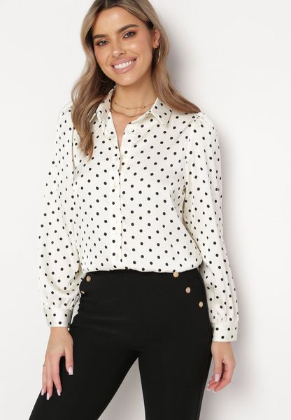 Jasnobeżowa Klasyczna Koszula na Guziki Ozdobiona Wzorem w Kropki Vildanas