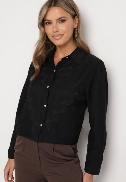 Czarna Koszula z Ozdobnym Haftem z Cyrkoniami Evelinarae