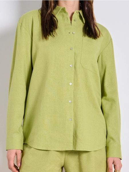 Wiskozowa koszula z domieszką lnu – zielony