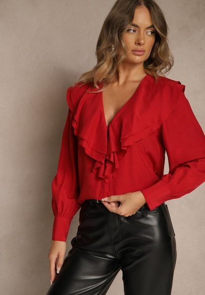 Czerwona Koszula Vices z Dekoltem z Falbanami i Bufiastymi Rękawami Zoiruna