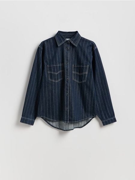Koszula o swobodnym fasonie, wykonana z bawełnianej tkaniny.