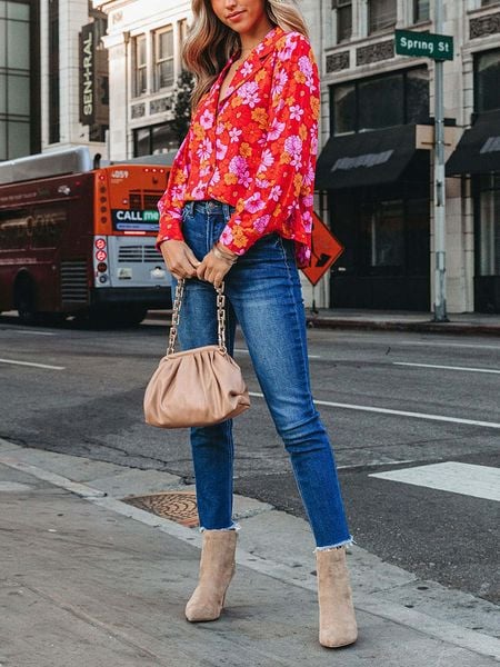 – kołnierz: kent- zapięcie: listwa guzikowa- krój: luźny- wzór: kwiatowy