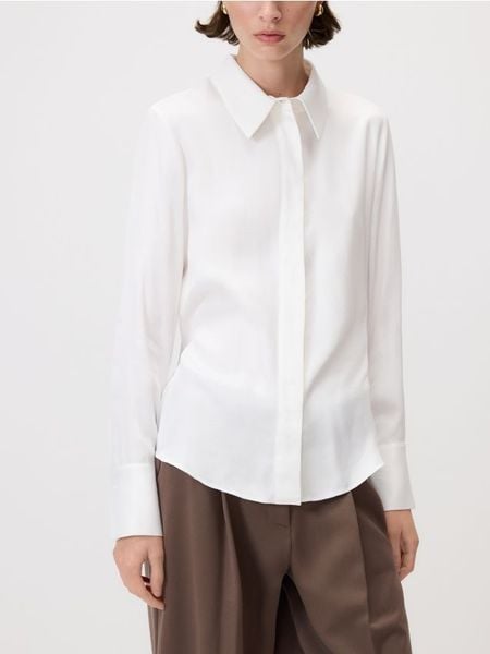 Koszula o klasycznym kroju, wykonana z gładkiej tkaniny.