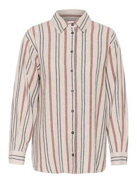 – z dodatkiem lnu- kołnierz: kent- zapięcie: listwa guzikowa- zakończenie rękawów: mankiet na guzik- krój: prosty- dolny brzeg: zaokrąglony- wzór: paski