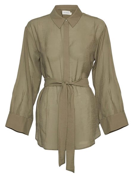 – kołnierz: kent- zapięcie: listwa guzikowa- zdejmowany pasek: tkanina- zakończenie rękawów: guzik- krój: luźny- look: jednokolorowy