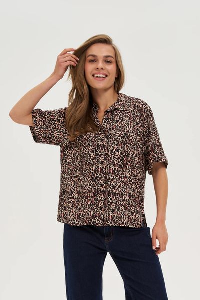 Czarna Transparentna Koszula z Wiskozy o Klasycznym Kroju w Print Zebra Covianne