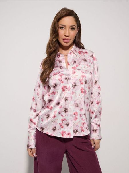 Sinsay – Satynowa koszula z kieszeniami w kwiaty – wielobarwny –