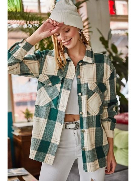 – kołnierz: kent- zapięcie: listwa guzikowa- kieszenie: na piersi- zakończenie rękawów: mankiet na guzik- dolny brzeg: zaokrąglony- krój: prosty- wzór: kratka