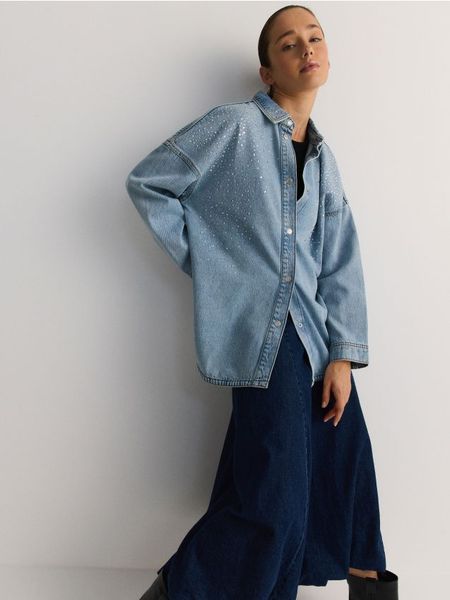 Jeansowa koszula z aplikacją – niebieski