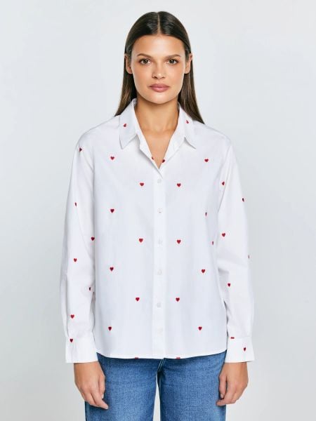 Koszula damska z wyhaftowanymi serduszkami biała Erin 100