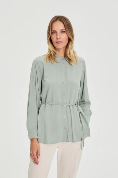 Jasnozielona Koszula Zapinana na Guziki Wiązana na Dole z Podpinanymi Rękawami Ranestia