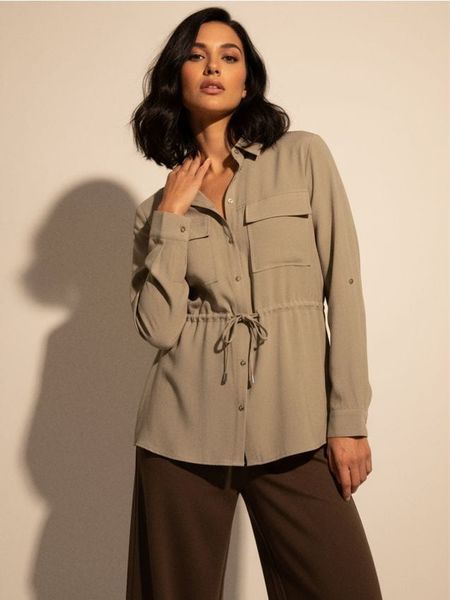 Koszula z kieszeniami cargo i wiązaniem w talii – zielony