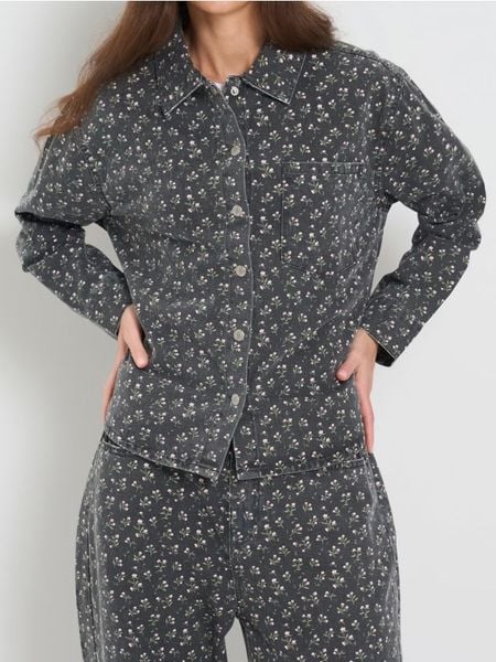 Jeansowa koszula ze wzorem – szary