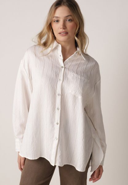 Biała Wiskozowa Koszula z Dodatkiem Lnu z Tkaniny Strukturalnej Noma