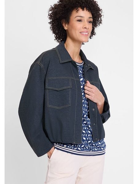 – kołnierz: kent- zapięcie: listwa zatrzaskowa- kieszenie: na piersi- dolny brzeg: elastyczny- krój: prosty- przetarcia: tak