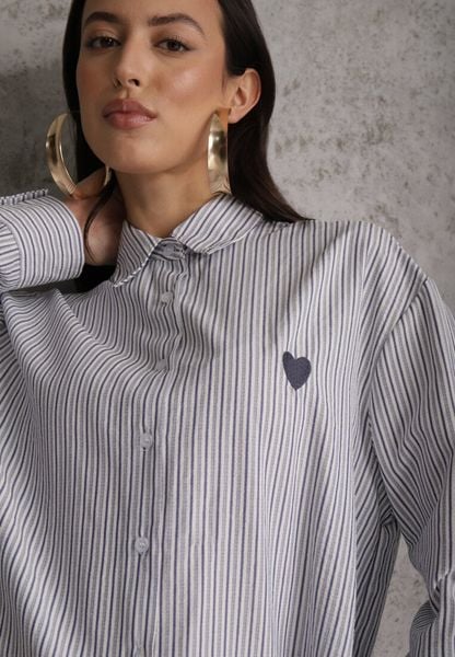 Niebieska Koszula z Bawełną w Paski z Haftowaną Aplikacją Serca Sewrona