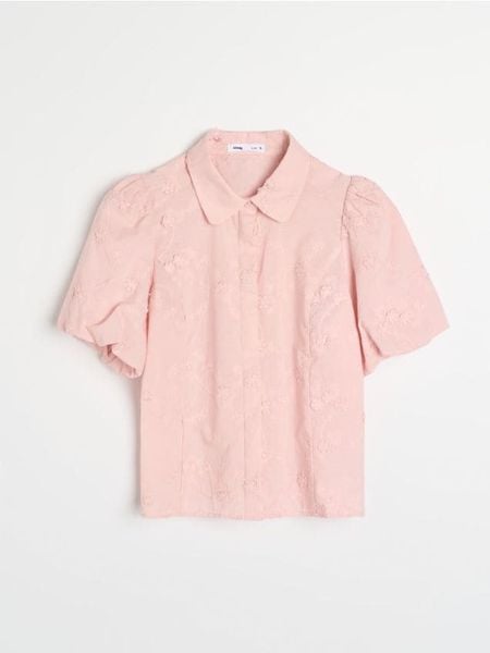Sinsay – Bawełniana haftowana koszula z bufkami – różowy –