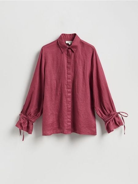 Lniana koszula z wiązaniami – brudny róż