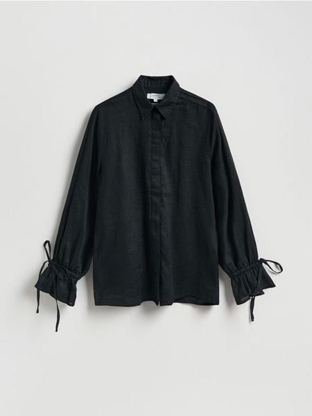 Lniana koszula z wiązaniami – czarny