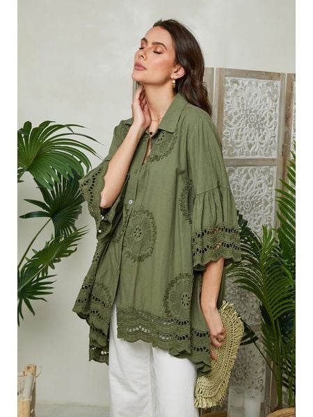 – czysta bawełna- kołnierz: kent- zapięcie: listwa guzikowa- detale: ozdobne bordiury- krój: luźny- wzór: na całościUwaga: Na metkach odzieży tej marki znajdują się rozmiary francuskie. Rozmiarówka została przez nas przeliczona. Podane do wyboru warianty rozmiarów odpowiadają standardowym europejskim rozmiarom konfekcji. Prosimy zapoznać się z zamieszczonym objaśnieniem rozmiarów.