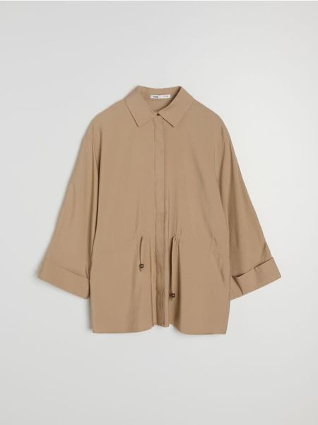 Sinsay – Wiskozowa koszula ze ściągaczem w talii – beżowy –